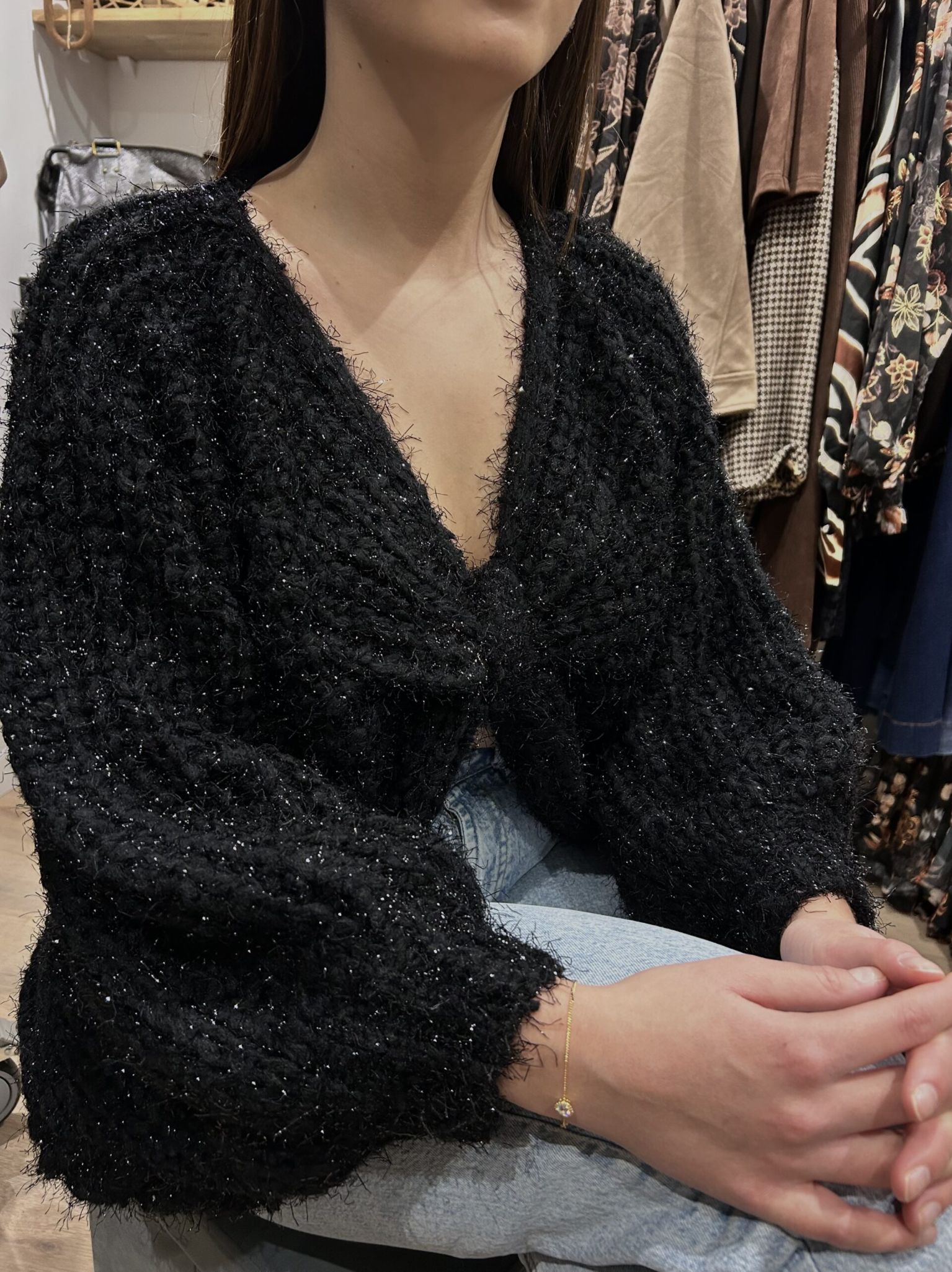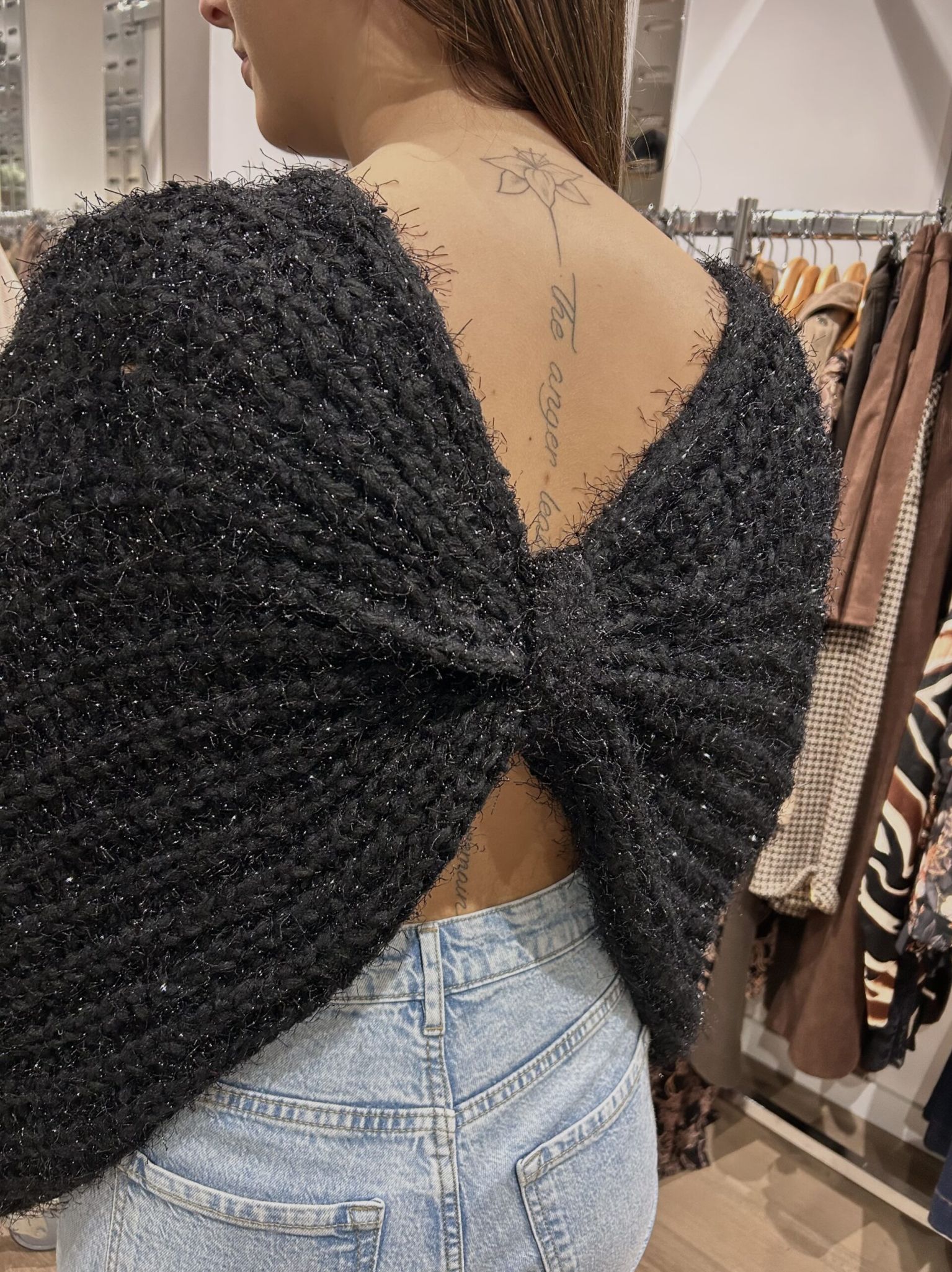 Le pull « PONCHO »oversize Julia est réversible et se porte aussi bien avec le noeud devant sur une robe habillée qu’avec le noeud dans le dos pour un coté original.