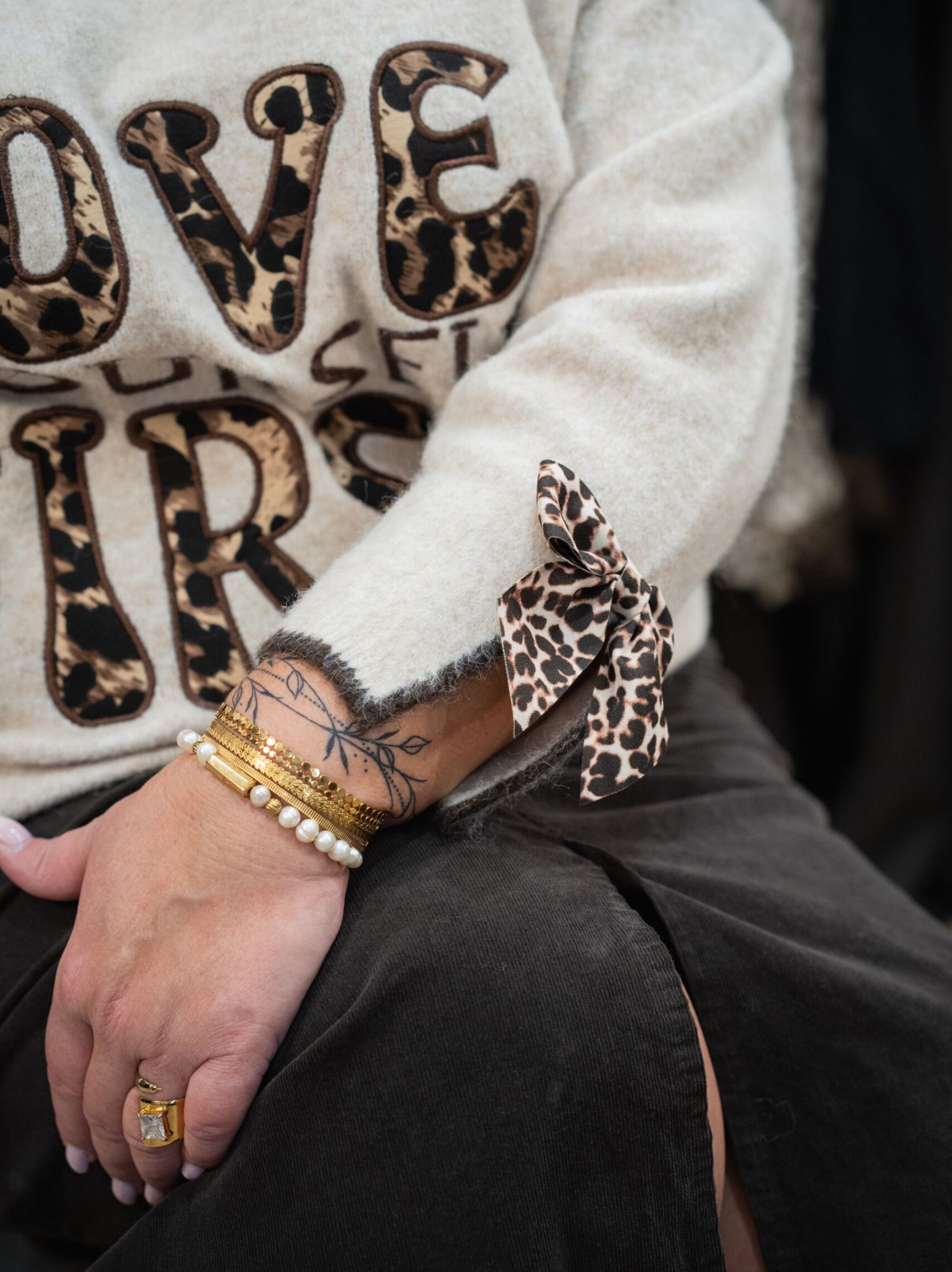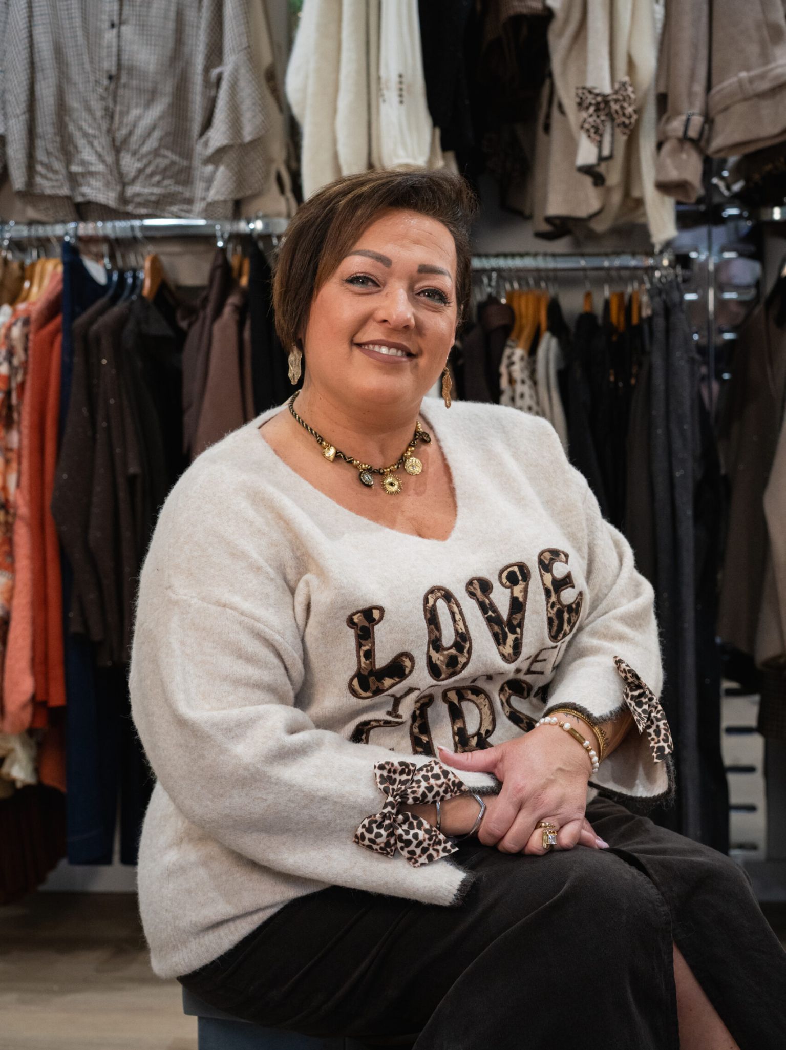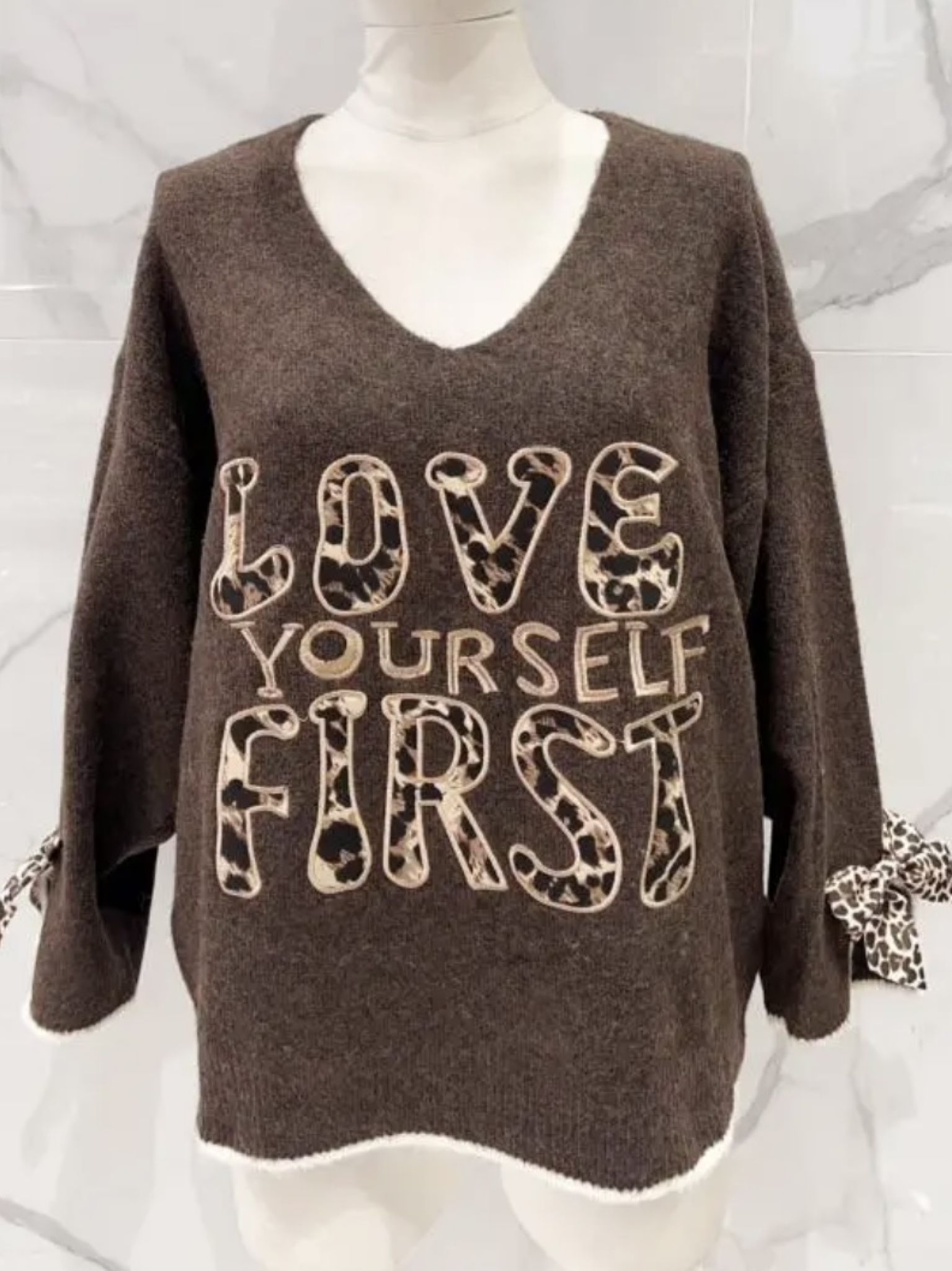 Le pull tout doux LOUISE orné de touches de léopard, apportera originalité à votre tenue.