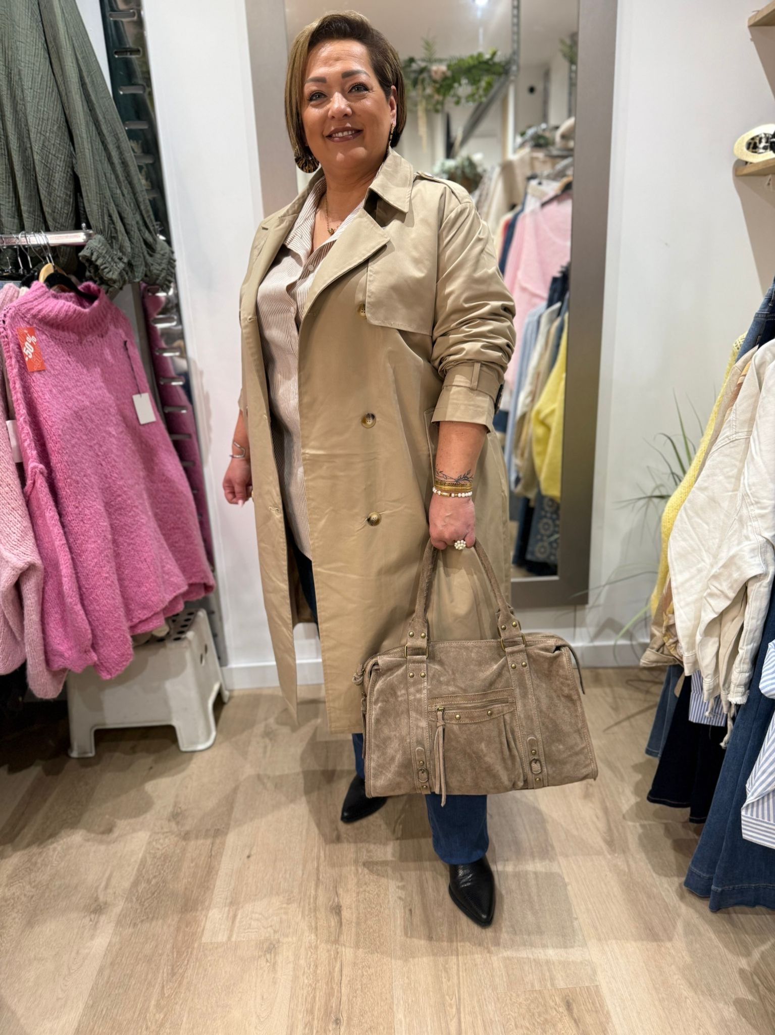 Ce trench LUCIE, coupe droite et mi-longue également ceinturé à la taille. Un intemporel chic et polyvalent, pour un look soigné au quotidien.