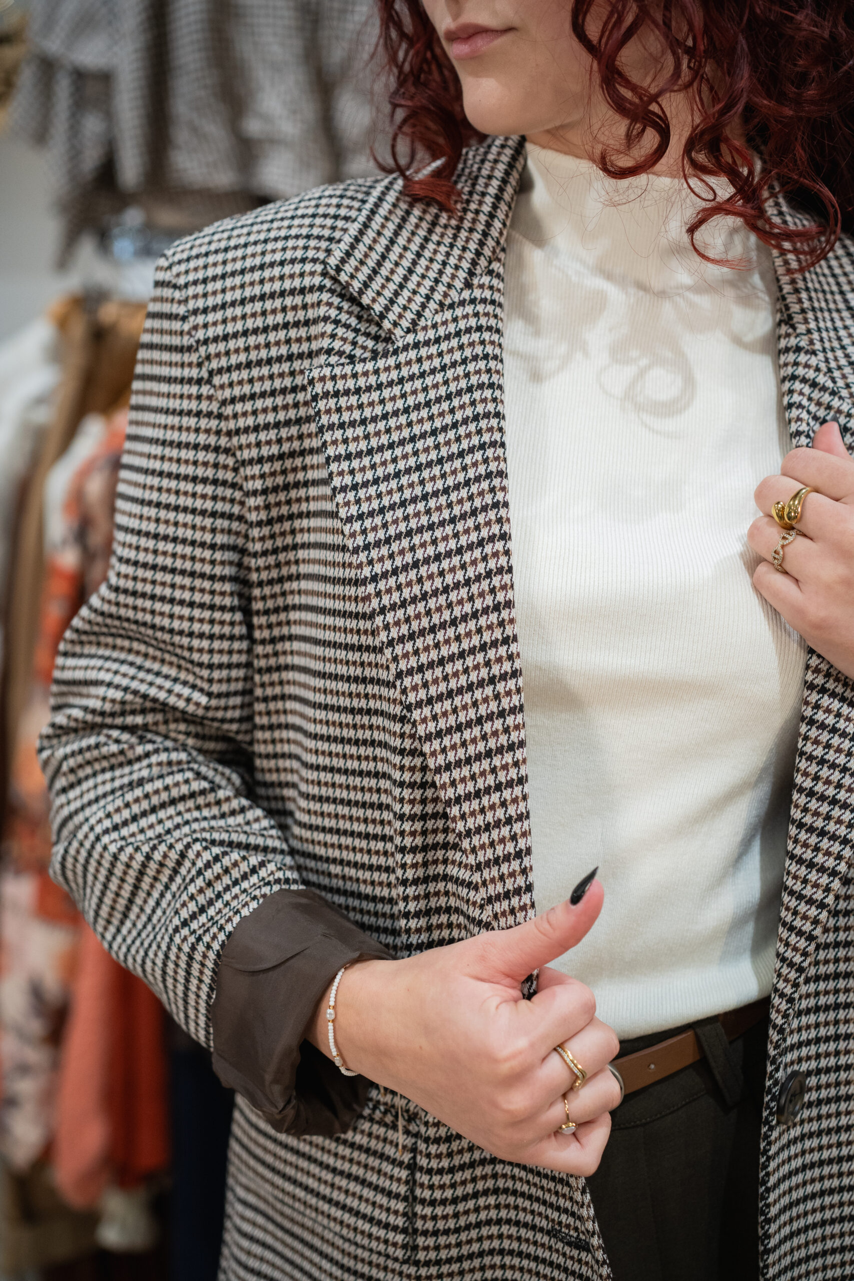La veste BOSSY de fabrication française en imprimé pied-de-poule est un élément ultra tendance à ajouter à votre garde-robe!