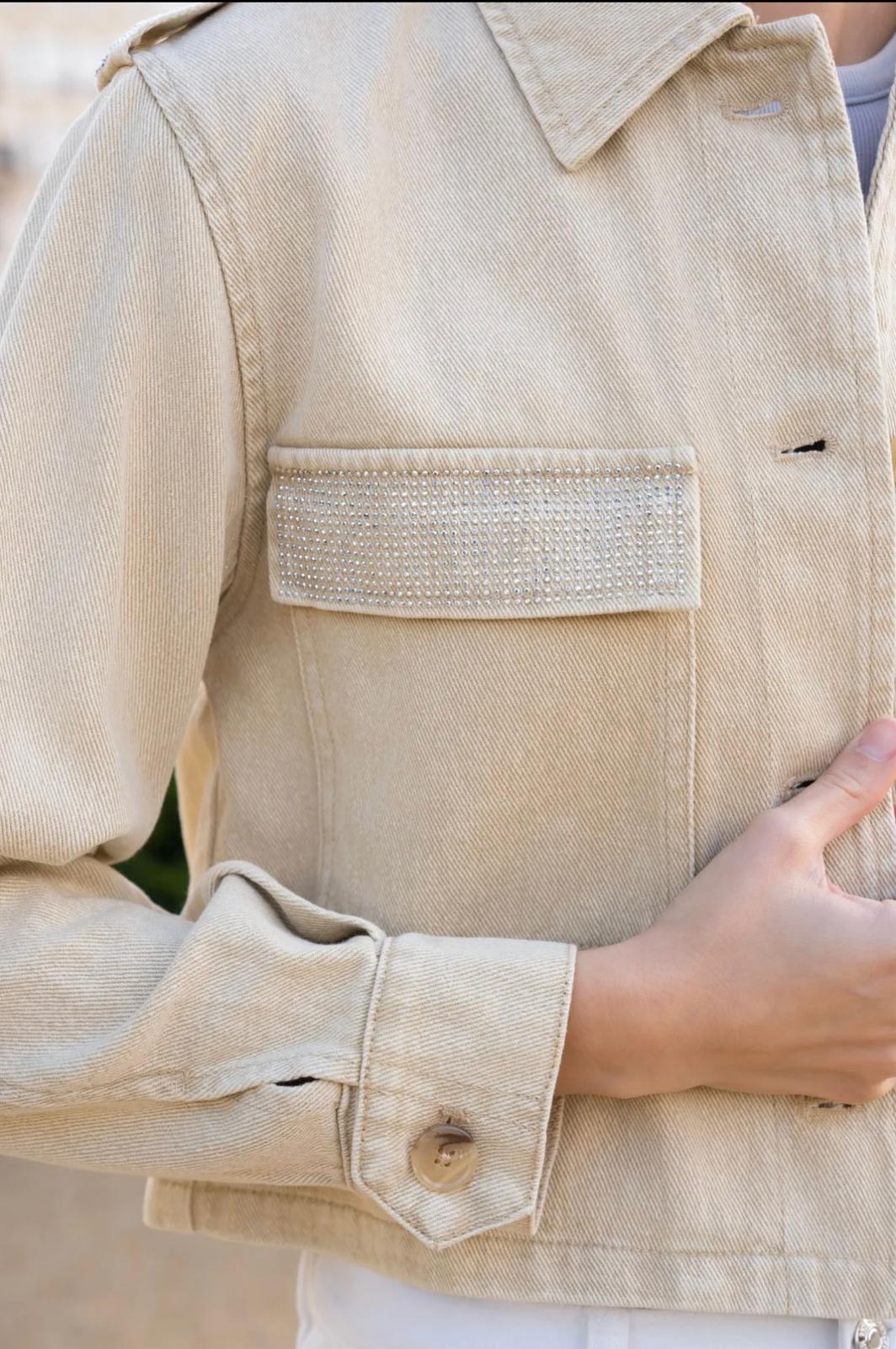 Veste courte ÉLISE, sublimée par des détails scintillants sur les poches et les épaules. Chic et lumineuse, elle apporte une touche élégante et raffinée à toutes les tenues. Existe en plusieurs couleurs.
